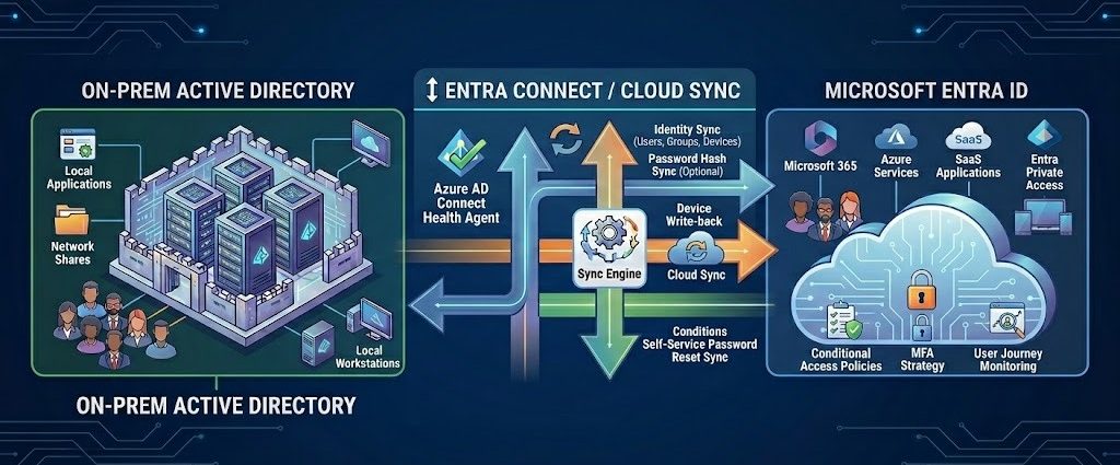 We design and stabilize robust hybrid identity architectures for organizations balancing On-Premises Active Directory and