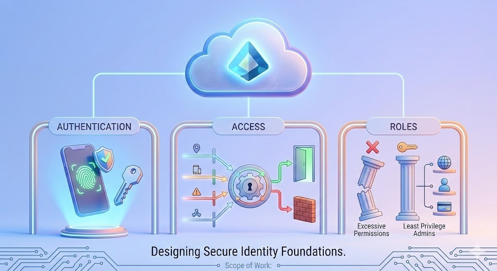 We design and implement Microsoft Entra ID environments that meet enterprise security, governance, and operational requirements. This service ensures that identity foundations are configured correctly from the start and aligned with Microsoft-recommended best practices.